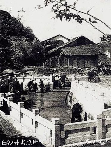 白沙井又名白沙泉,位于长沙天心阁东南方约一公里处,自古以来为江南名泉之一。泉水一年四季,不论长涝久早,都不盈不竭,汲以沏茶,格外芬芳醇爽,成为品茶家的甘露琼浆。据古星像说,白沙井上应天上的长沙星,故白沙井又名星泉,并被誉为“星泉溥润”、“玉醴流甘”。明嘉靖(1522—1566)《长沙府志》载:“白沙井,县(指善化县)东南二里,井仅尺许,清泉甘美,通城官员汲之不绝,长沙第一泉”。清乾隆皇帝在《玉泉山天下第一泉记》中将白沙井与北京玉泉、塞上伊逊水、济南珍珠泉、扬子江金山泉、无锡惠山泉、杭州虎跑泉一道御定为全国七大名泉。白沙井附近白沙街、白沙井街、白沙巷、白沙里、白沙岭、白沙游路因之得名。民间传说白沙古泉是龙吐之水,所以才是如此明净纯澈,甘美爽口。相传在很久很久以前,江西有一条孽龙常常掀起滔天洪水祸害百姓。此事被善心的观音菩萨获知,决定制服孽龙安定百姓,经几次斗法较量,孽龙已头破血流,精疲力竭。它钻土逃循,直逃到千里之外的湘江东岸才钻出地面。饥饿难忍的孽龙向江畔卖面的少妇讨要一碗而条充饥,而少妇正是观音所化,在此静候降伏孽龙。面条刚落入孽龙肚内,便化为一条条银链,牢牢地锁住了孽龙的心。孽龙只好苦苦向观音恳求饶命,并答应吞云吐水,造福百姓,永不为害。观音念其有弃恶从良的诚意,不忍加害,将它就地囚禁,化作了回龙山。从此,回龙山下泉水流涌,天下太平。这个传说从清代张九思的《白沙泉记》关于“荫龙泉”的记述里大致可以找到依据,但老百姓摘不清文人道士之类的文绉绉的地理风水谶纬之学,于是就演变出了以上的传说故事。