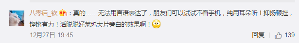 听过后,不少英语专业的学生也留言,表示这英文发音,“服气!”有人称,“活脱脱好莱坞大片旁白的效果!”