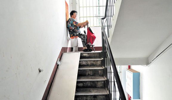 只有连年累岁常怀一颗善心,才有“爱心创意”如此贴心暖心!老旧多层住宅,通常没装电梯。嗲嗲娭毑们拎点东西上楼,往往体力难支。荷花池社区在楼梯靠墙一侧,安装钢板造出个斜坡,小拖车拖行“爱心通道”上,方便省力;爬楼累了,楼道转角置有折叠“爱心凳”,正好歇歇脚。“爱心凳+爱心通道”微爱心项目,名字很文艺——转角遇到爱!