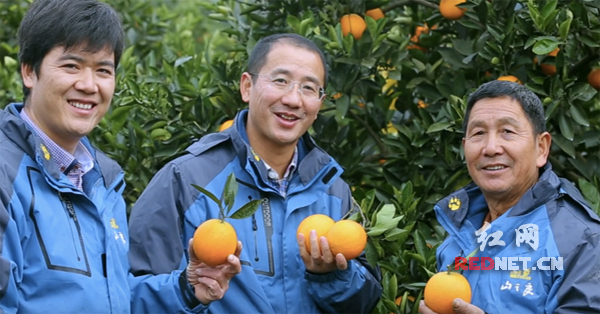 一起种橙子的戴润平(中)父子三人。