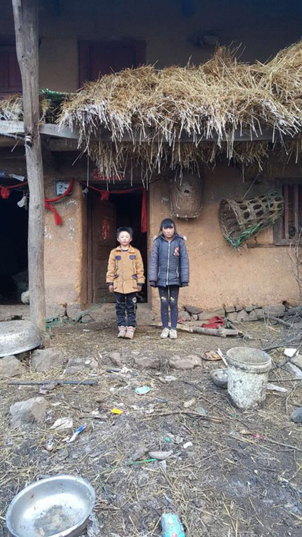 姐弟俩站在房前。 本文图片 受访者:王刚奎 供图