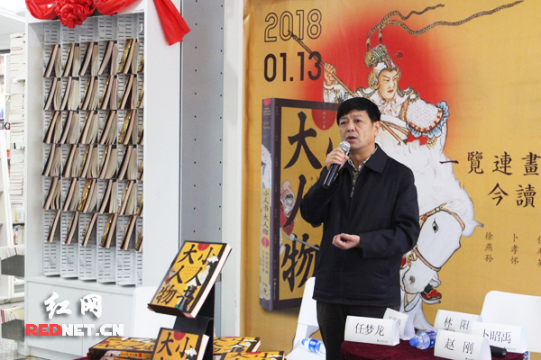 首发式上,林阳与任梦龙、王维澄、赵刚等嘉宾在现场热聊连环画。赵刚说,作为连环画的一名忠实读者,儿时爱看并临摹这些连环画大家的小人书,《小人书大人物》是一套既有知识性,又具史料性的连环画丛书,“小人书大人物,小人书大世界,小人书大艺术”。