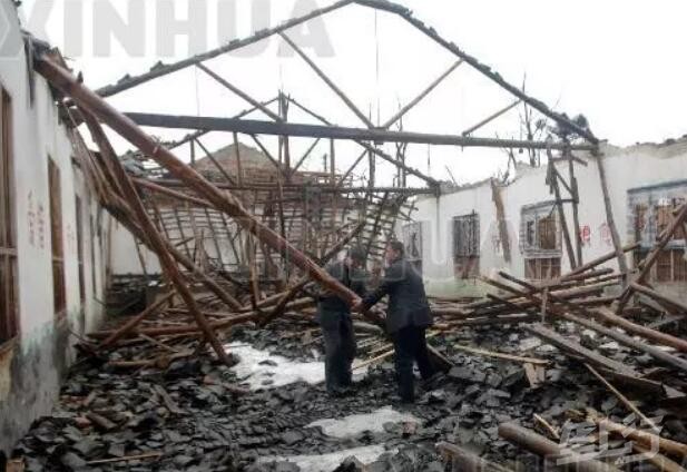 冰雪中教室倒塌了