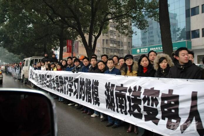 这是长沙市民在路旁送别烈士。