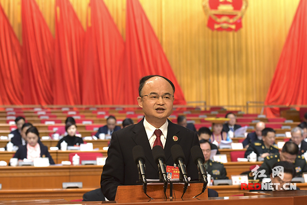 红网时刻1月26日讯(记者 郑涛 摄影 李长宏)1月26日下午,湖南省人民检察院检察长游劝荣在湖南省第十三届人民代表大会第一次会议上作工作报告。