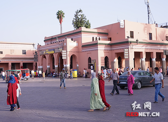 离开卡萨布兰卡,下一站就是马拉喀什。马拉喀什,柏柏尔语里是“上帝的故乡”的意思,又被称作“红色之城”——摩洛哥还有白色之城、蓝色之城,皆因建筑物外墙颜色的缘故。马拉喀什的建筑物多以赭红色的砖石砌就,包括她的清真寺,这让我联想到印度的斋浦尔。只是,斋浦尔建筑物的红,是当地官员为博得来访的英国王室成员的欢心,兴师动众给粉刷的。