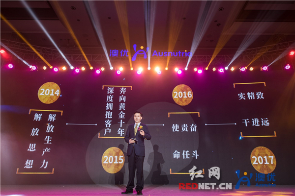 2月1日晚,“新所向·见未来”澳优2018年会暨新LOGO发布会在湖南长沙举行。
