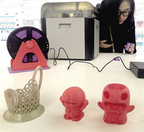 首届中国(哈尔滨)航空航天3D打印材料及应用制备技术博览会上,小型3D打印机打印出的精致工艺品吸引观众驻足。