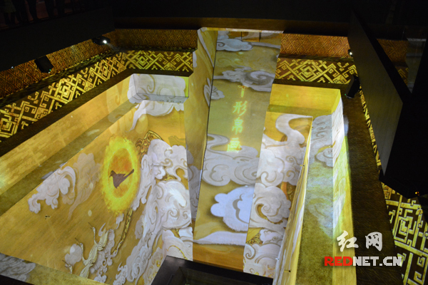 “马王堆汉墓墓坑结构的展示采用了3D mapping技术,用这样的方式呈现文物在国内博物馆中是比较罕见的。”湖南省博物馆综合办公室副主任黄志华向记者介绍,展示墓坑所用到的技术名为3D mapping,它把辛追夫人墓葬中“四棺一椁”中的“四棺”以及T型帛画上的纹饰制成了动画表现出来,并投影至墓坑表面和棺椁上,把汉代人“事死如事生”的观念复原展示出来。这项技术运用于马王堆汉墓墓坑结构的难点,主要在于要在凹凸不平的墓坑表面进行投影,但这也正是其给观者带来震撼感觉的原因。