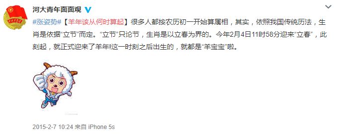 2015年同样出现立春早于春节的状况,当时也有人提出,羊年比春节来得早。