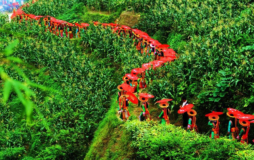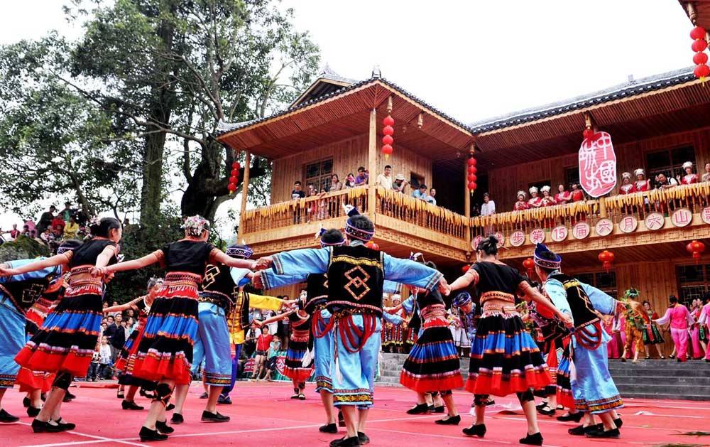 对歌定情、送伞订婚、打泥还礼、成婚“打滔”、“拦门酒”以及每年五月举办的“讨念拜”节,六月举办的“中国金银花节”,七月举办的“讨僚皈”节三大传统节日,隆重粗犷、怪诞而又极富情致。
