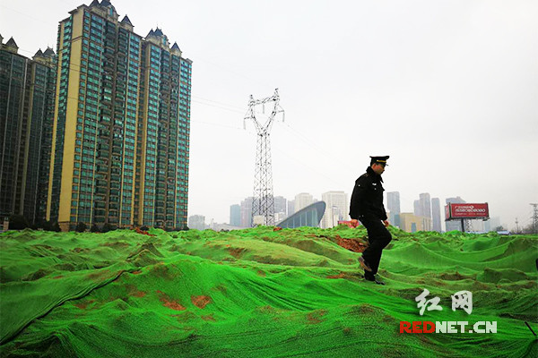 1月20日,雨花区一建设工地因擅自焚烧垃圾被顶格罚款10万元。21日,记者看到,工地现场垃圾及裸露黄土已经用绿网覆盖。