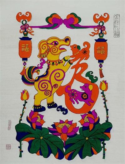 狗年生肖画,滩头年画求创新。