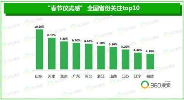 在各种过年习惯中,山东仪式感普遍最高,占比10.2%。