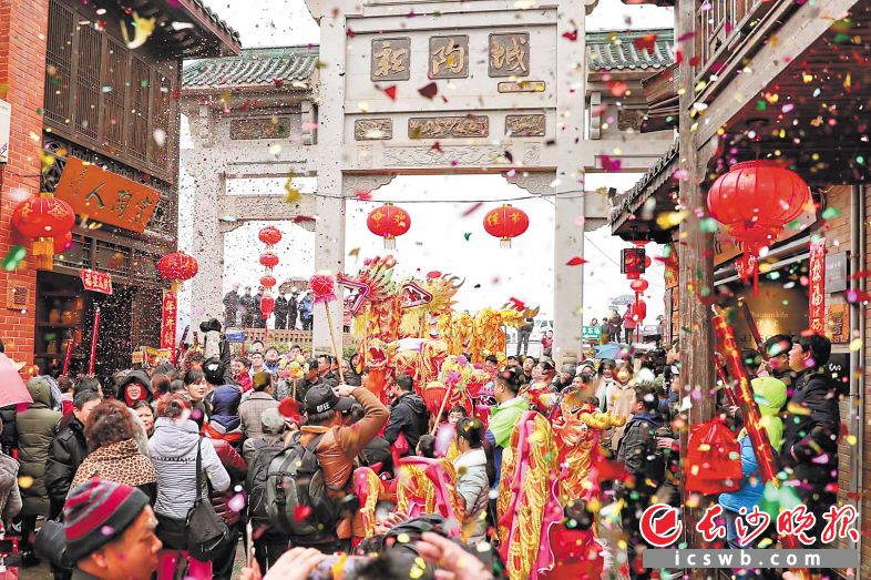 “月异日新鸡报晓,年祥岁吉犬开门。”每到新春佳节,人们总是载着思念从万水千山归来,寻找魂牵梦绕的家乡味道、年味记忆。在湘江之畔的望城大地,今年春节古镇乡村年味更浓、乡愁更近:靖港堂会里摆起了团圆宴,千年铜官请出窑神送福,新康美酒醉倒了外国友人,贝拉小镇亲子运动同乐,千龙湖畔开起了民俗大会……