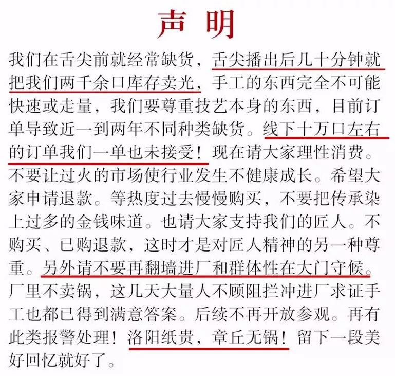 “章丘无锅,请大家理性消费”