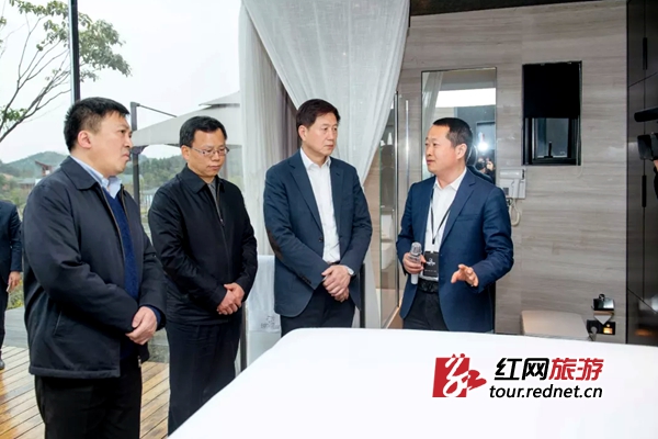 国家旅游局副局长王晓峰(右二)一行来到长沙县地球仓浔龙河孵化基地调研旅游新业态发展情况。