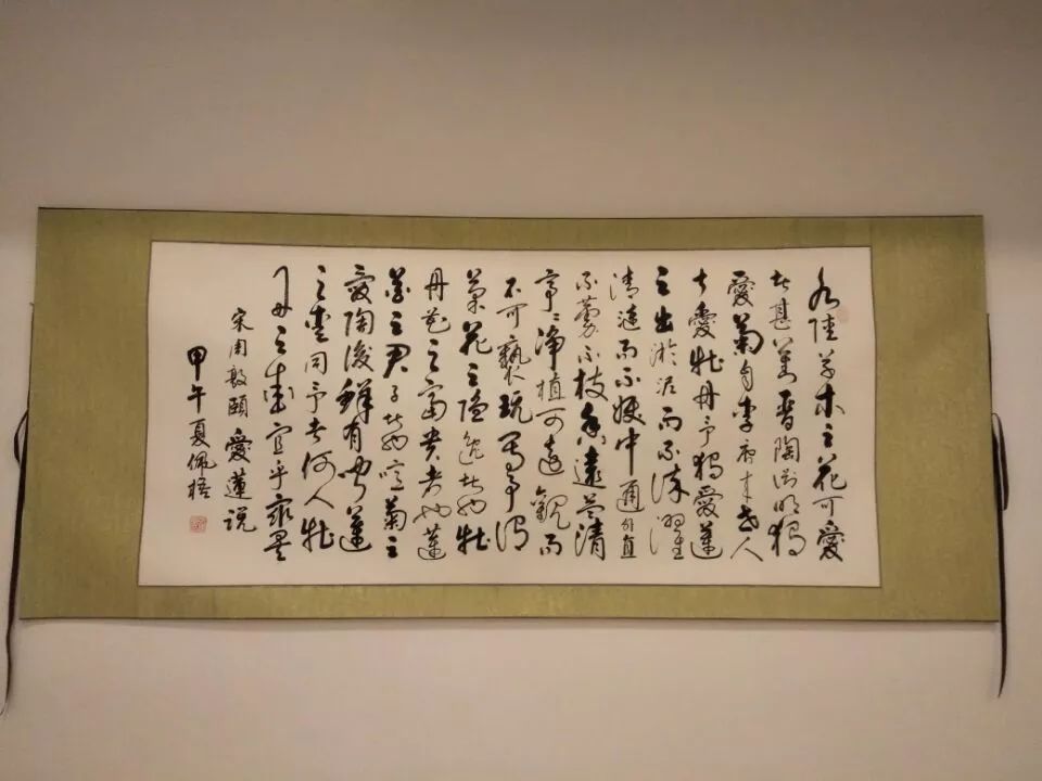这里要说的“濂溪书院”位于湖南科技学院国学院内。从校门进入,往左稍稍前行,可看到一座二层灰砖的特色小楼安静地掩映在绿树丛中,它便是国学院的集贤楼。置身楼内,南面有青青的草地和高大的桂花树,北面有假山、石桌、石凳和小树林,环境清幽宜人。国学院一楼设有周敦颐博物馆,又称濂溪书院。驻足门外,门头匾额上刻有韩国训蒙斋柳昇勳老先生的“濂溪书院”榜书。推门而入,迎面墙壁上悬挂着木刻的出自清代邓显鹤《濂溪集》中的濂溪先生立像。立像两边是十二块展板,文字部分介绍了濂溪先生的生平、地位和影响,另有三块展板为濂溪先生行迹表、濂溪理学与湖湘文化脉系表和出处最早的宋版《濂溪集》中的太极图。在立像对面,悬挂着濂溪先生手书真迹,包括澹山岩题刻、朝阳岩题刻、九龙岩题刻在内的古旧拓本,以及明代贾瑜楷书《太极图说》、日本任大卷行书《爱莲说》和月岩摩崖石刻拓本。
