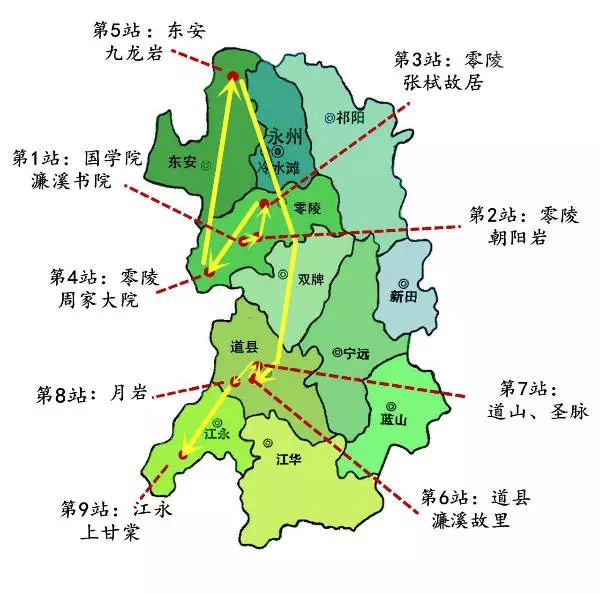 永州濂溪故里旅游攻略示意图。 绘图者:唐司妮