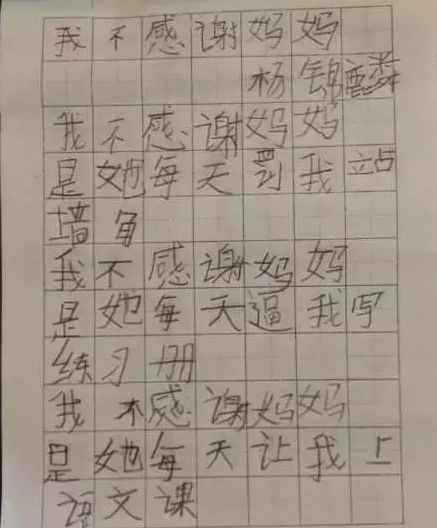 小学一年级的学生,能写出什么水平的作文?上一年级不满7周岁时的他就写出了“我不感谢妈妈”的诗,历数妈妈逼着他刻苦学习,对他严厉管教,但最后神转折出现了……