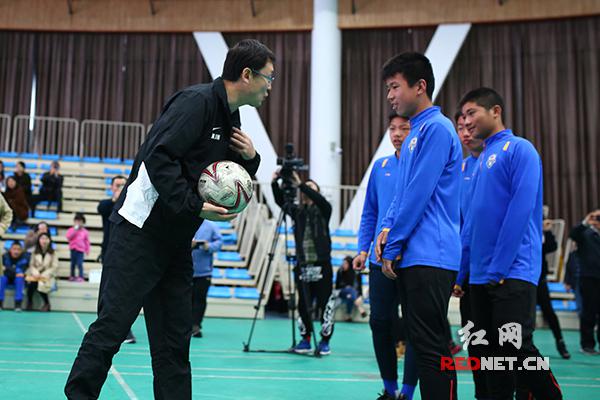 中国足协U21选拔队主教练孙继海指导学生球技。
