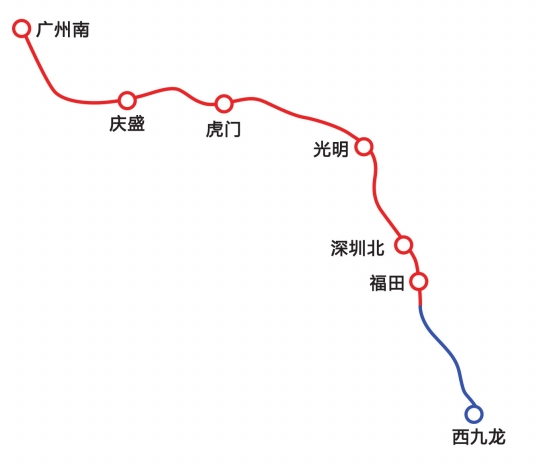 广铁集团介绍,4月1日进入不载客试运行阶段后,每天将安排多趟高速动车组往返于广州南、深圳北、福田站和西九龙站间。广深港高铁全长约140公里,设广州南、庆盛、虎门、光明、深圳北、福田、西九龙等7个车站。其中,广州南至深圳北段、深圳北至福田段已先后通车,仅剩香港段(福田至西九龙)未开通。香港段全长约26公里,开通后运营时速为200公里。根据香港特别行政区政府与中国铁路总公司今年1月签署的备忘录,广深港高铁香港段开通初期,计划每日开行长短途列车百余对。短途列车往返香港西九龙站、福田站、深圳北站、虎门站及广州南站。长途列车可直达北京、上海、昆明、桂林、贵阳、石家庄、郑州、武汉、长沙、杭州、南昌、福州、厦门及汕头等城市。