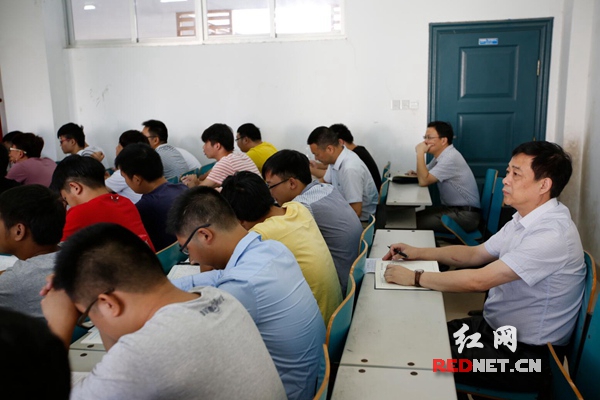 湖南理工学院党委书记李明(后排左)走进课堂。