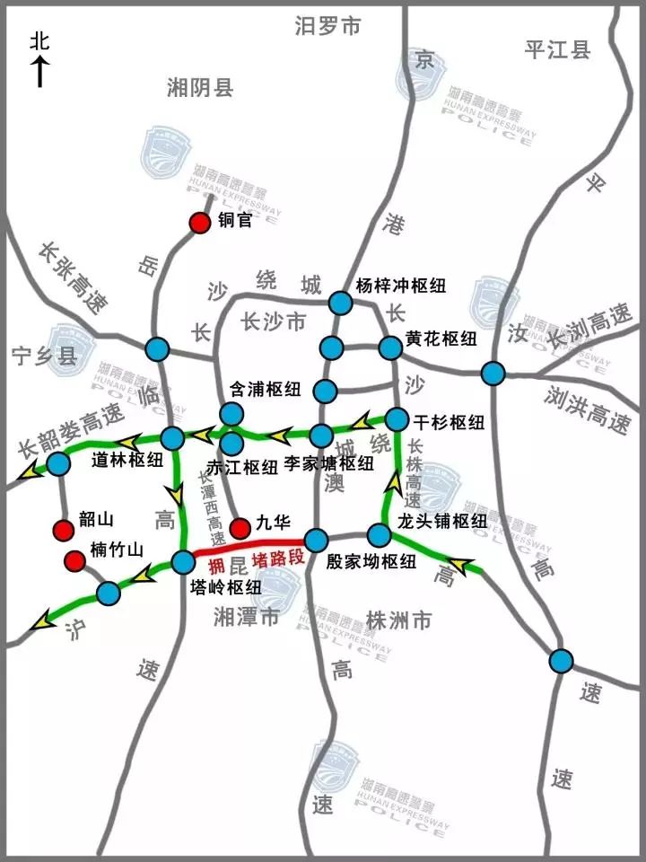 (二)沪昆高速湘潭段(殷家坳互通-塔岭互通)避堵绕行建议: