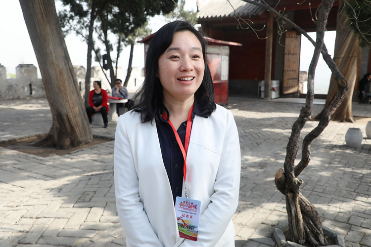 在司马迁祠前,著名文化学者、西北大学副教授赵爽英向采访团成员详细介绍韩城文化的延绵历史。