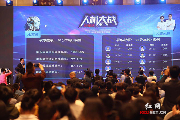 据中信湘雅医院院长林戈介绍,大会现场举行的人类染色体影像处理人机大战属全球首次,此前人工智能结合医疗领域从未有过此类型比赛。此次中信湘雅医院派出了10位资深研究员,直接对战光琇-自兴智能医疗联合实验室研发的系统。