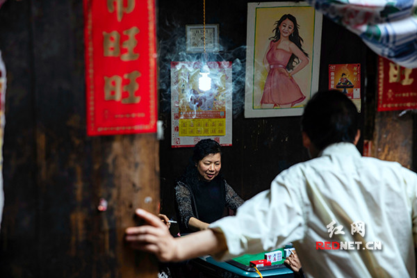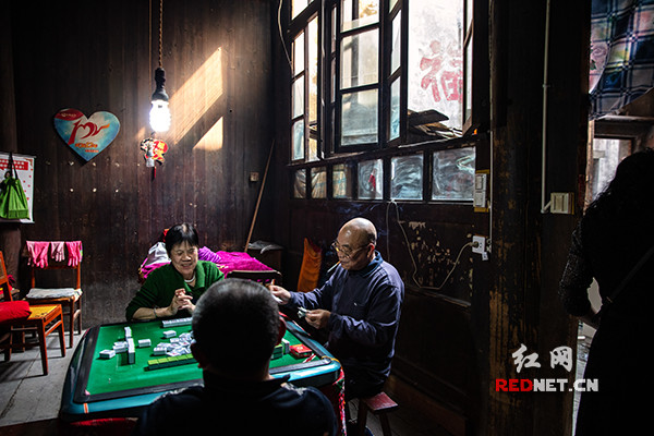 假日里,古城居民悠闲地打着麻将,阳光透过窗户射入房间,十分悠闲。