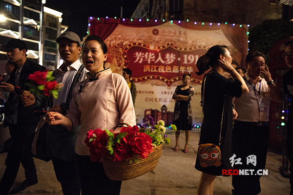 入夜,1915会馆前,一场民国舞会即将举行,会馆外卖花的姑娘正在叫卖着鲜花。