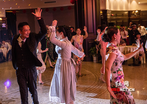 舞会上,演员与游客们在跳着民国特色的舞蹈。