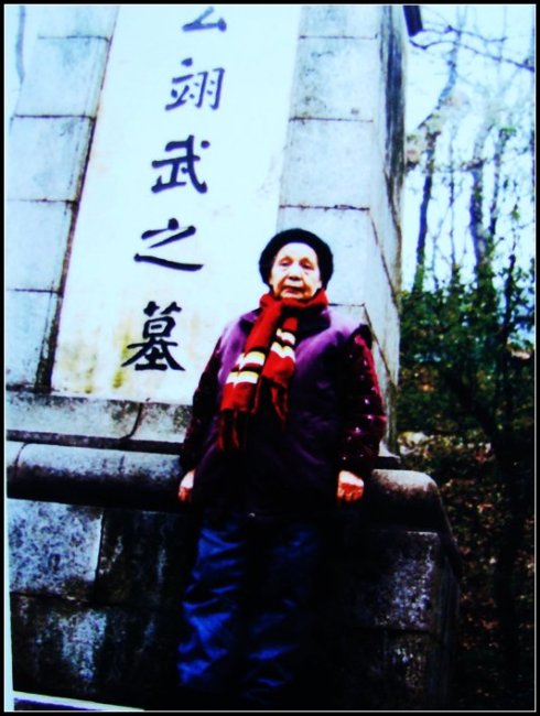蒋翊武的亲生女儿蒋宗仁(1912年出生)95岁时在父亲墓碑前的留影。照片提供:蒋漫征。