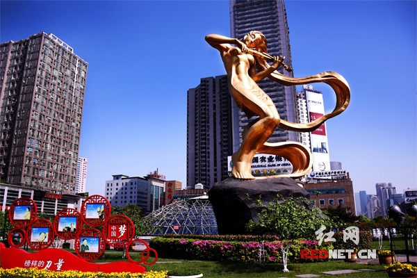 春风吹动长沙市芙蓉广场浏阳河女神的“头发”。