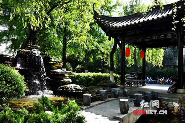 定王台街道丰泉古井社区百果园的一方雅趣。