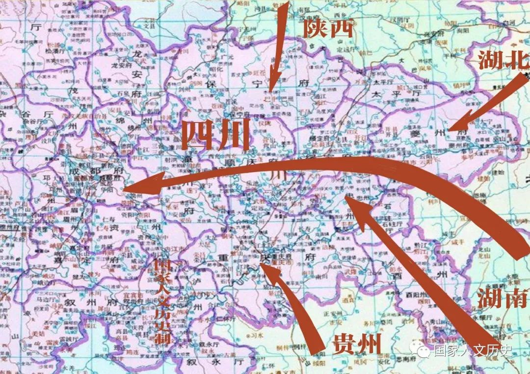 临走时,除了大批金银财宝外,数十万被强征入伍的湖广百姓也被张献忠带走了。这几十万以农民军身份入川的湖广人,除一部分在作战中牺牲外,大多数人都在四川居住下来。
