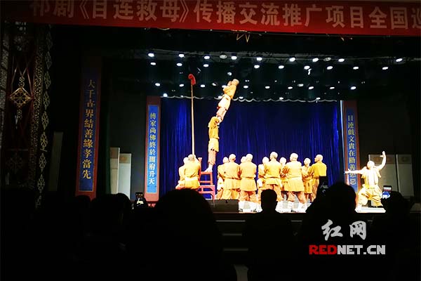 祁剧《目连救母》剧照——为母超度“倒大树”。