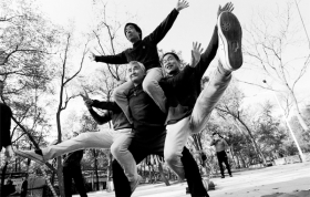 在天津红桥区有支“老顽童体操队”,这是支明星队伍,每次出现都会引起轰动。公园里,他们时而在吊环上倒挂金钩,时而叠罗汉孔雀开屏,看得众人目瞪口呆。