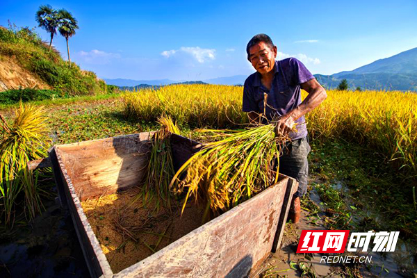 今年,奉军兵家的120亩紫米早已被商家全部预定,仅此一项,他家的年收入有望突破15万元。高山梯田的紫米能卖个好价钱,这得益于湖南广电集团实施的精准扶贫。