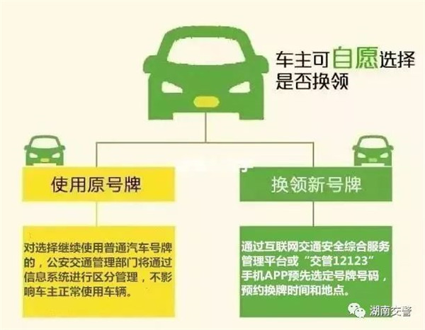已经领取普通汽车号牌的新能源汽车,车主可自愿换领新能汽车号牌,也可继续使用原普通汽车号牌。但是,原普通汽车号牌丢失或损坏的,公安交通管理部门将予换发新能源汽车专用号牌。对选择继续使用普通汽车号牌的,公安交通管理部门将通过信息系统进行区分管理,不影响车主享受新能源汽车交通管理优惠政策。
