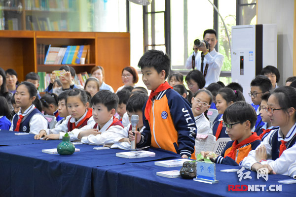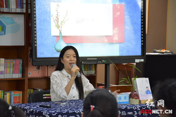 4月27日,雨花•花语——《几生修得到梅花》诗词分享会在长沙市雨花区砂子塘泰禹小学举行,中国诗词大会诗词才女陈更带着她的新书走进校园,和孩子们亲密交谈。