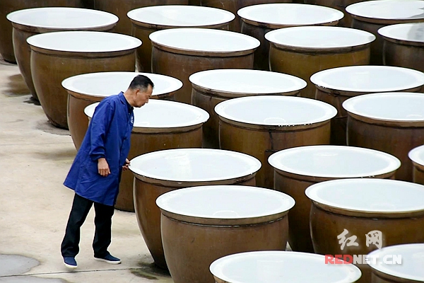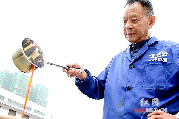 70岁,54年,上千个大缸。三个数字串起了王培其的“酱油情缘”。他16岁来到“吴元泰”酱园当起了学徒,认真学习制酱传统工艺。在湘潭酱园几十年来的分分合合过程中,王培其始终坚持从事酱油工作,摸索发掘出了一套传统古法制作酱油的技术。每次看到一缸缸色深、汁浓的酱油即将出炉,他就如老父亲看到了新生儿一般欣喜。