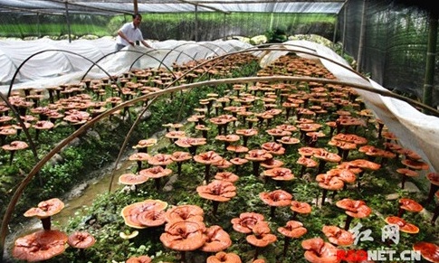 掘金林下,种百术、灵芝等中药材。