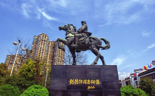 平江起义纪念馆前,彭大将军横刀立马。