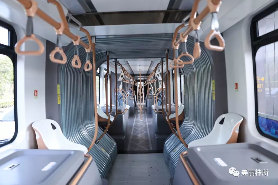 除此之外,相比绿款智轨列车,本次试运行的两列智轨列车在外观上,分别采用了时尚橘、蓝白相间两种不同的全新配色设计,清新动感的外形为城市增添了一道靓丽的风景。在安全性、舒适性和适用性等方面也有较大优化提升:增加了360度环视系统和车辆雷达等安全防护设施,运行安全得到进一步保障;在内部空间布局方面,增加了折叠座椅,可以提供更多座位,同时对扶手高度和数量也进行了优化调整,更加富有人性化设计。在智能驾驶方面,车辆具备半自动化驾驶能力,正常情况下司机只需进行辅助驾驶,车辆停靠站等可以依靠车辆自动循迹功能予以精准实现。