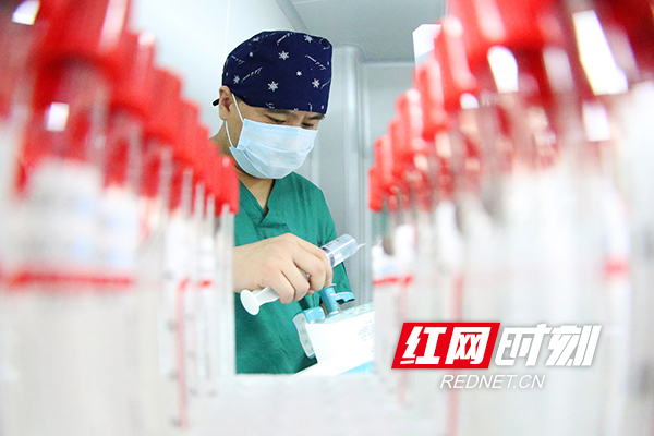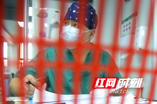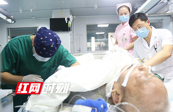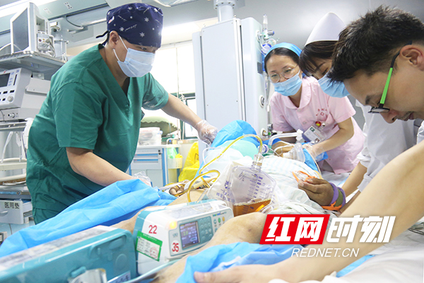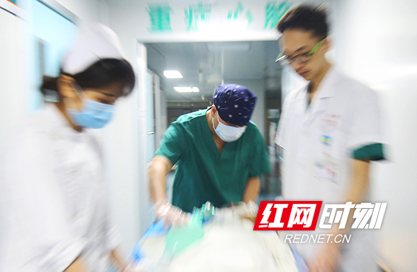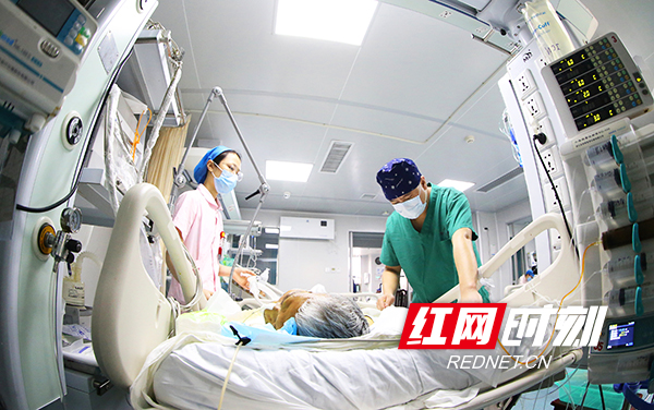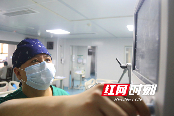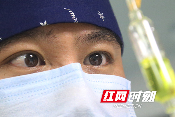 邓鑫虎在ICU病房紧张忙碌的工作中。