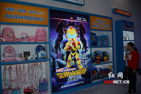 蓝猫动漫系列:蓝猫动漫传媒首次精彩亮相文博会。蓝猫是中国大陆动漫迄今为止唯一的“驰名商标”,诸如《蓝猫淘气3000问》《蓝猫龙骑团》《蓝猫典典环游记》等。其中《蓝猫淘气3000问》系列,曾成功开创了“蓝猫知识卡通”模式,输出到欧美、中东、中南亚等36个国家和地区,被誉为“中国动漫的一个传奇”。