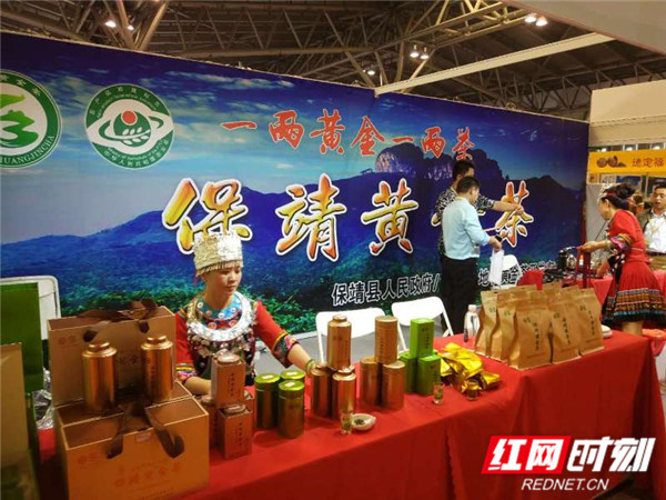 保靖黄金茶以其“高氨基酸、高茶多酚、低酚氨比”的高贵品质以及“香、绿、爽、浓”的独特气质惊艳大都市、飘香上海滩。展会中,各地客商纷纷前来保靖黄金茶展位,咨询、洽谈、品茗,工作人员身着民族盛装,热情接待,逐一解答。