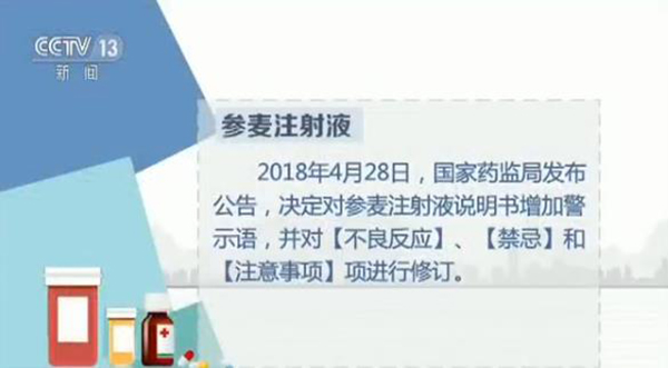 2018年4月28日,国家药监局发布公告,决定对参麦注射液说明书增加警示语,并对【不良反应】、【禁忌】和【注意事项】项进行修订。